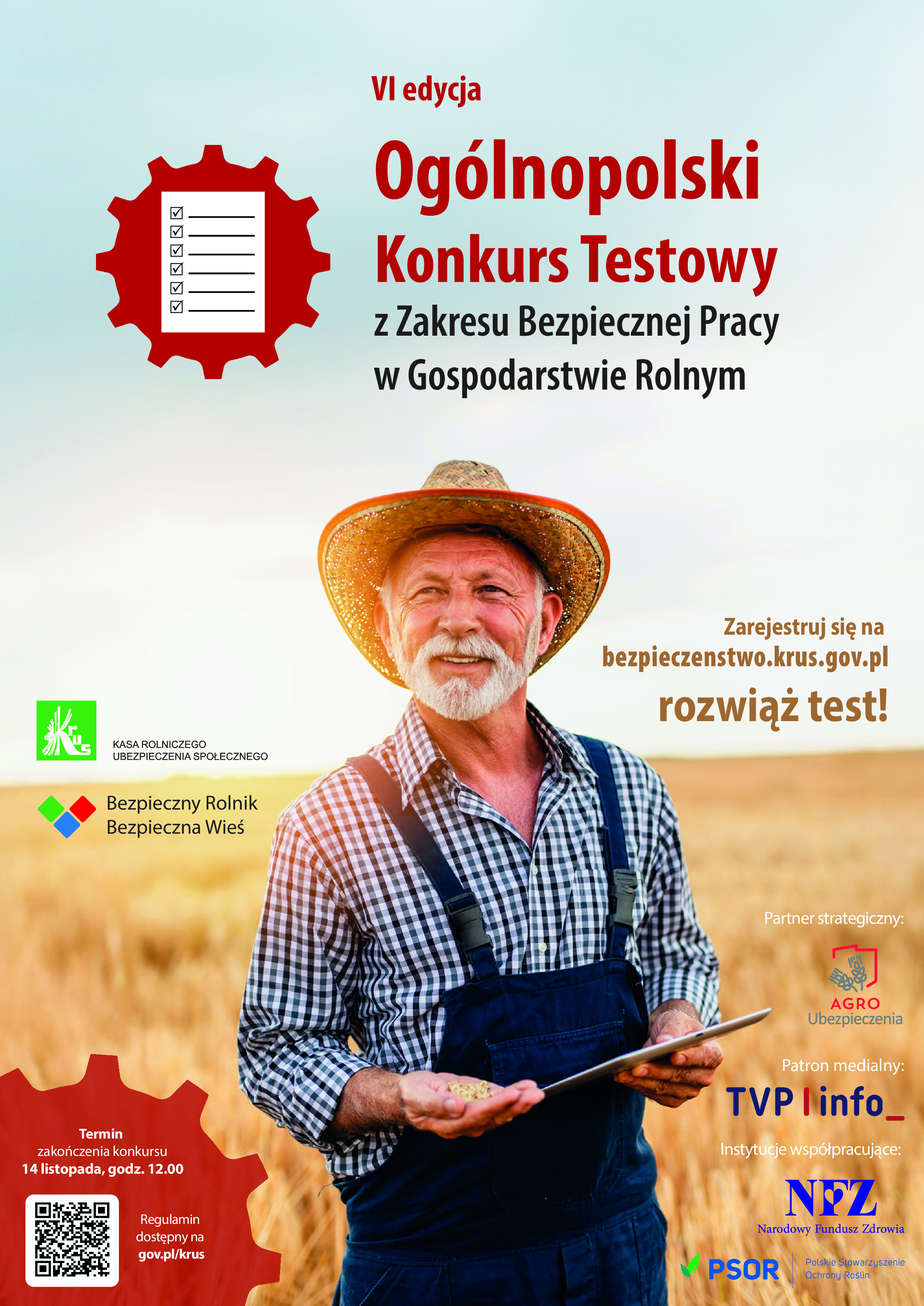 Kasa Rolniczego Ubezpieczenia Społecznego zaprasza rolników do udziału w VI Ogólnopolskim Konkursie Testowym z Zakresu Bezpiecznej Pracy w Gospodarstwie Rolnym tym razem organizowanym pod hasłem „Dobrostan Rolnika”.