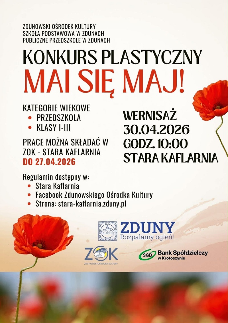 Prace konkursowe można składać w Zdunowskim Ośrodku Kultury do dnia 27 kwietnia 2026 roku. Wernisaż prac odbędzie się 30 kwietnia 2026 roku o godzinie 10:00 w Starej Kaflarni.