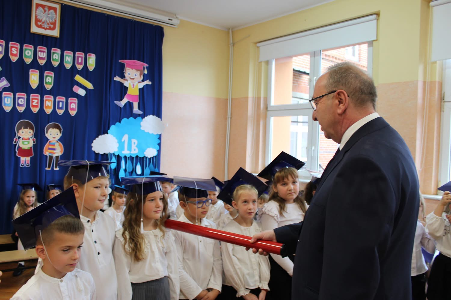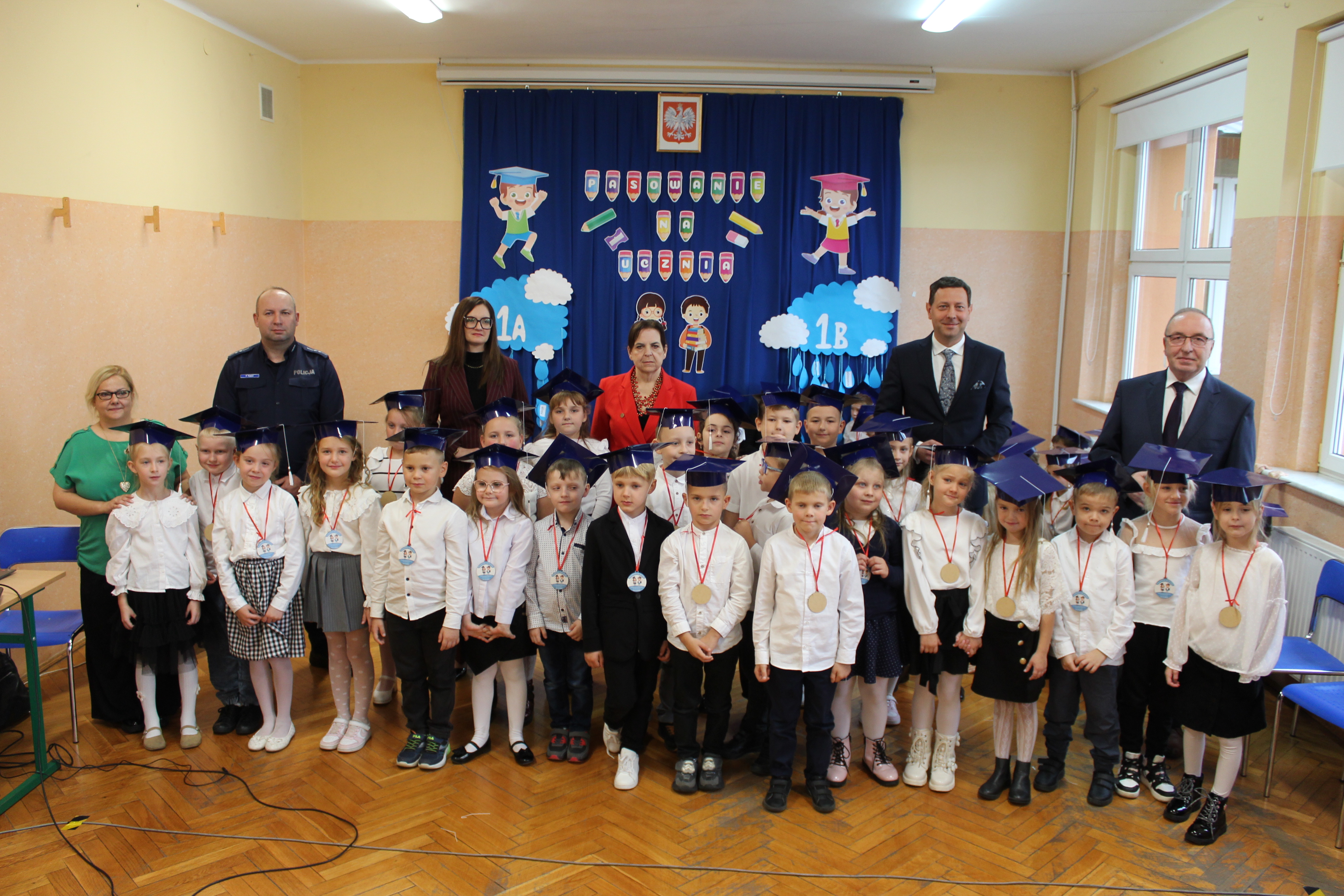 W uroczystości uczestniczyli Burmistrz Zdun Miłosz Zwierzyk, Zastępca Burmistrza Zdun Anna Pietrzak-Figlak, dzielnicowy Paweł Tkacz, dyrekcja szkoły oraz rodzice pierwszoklasistów.