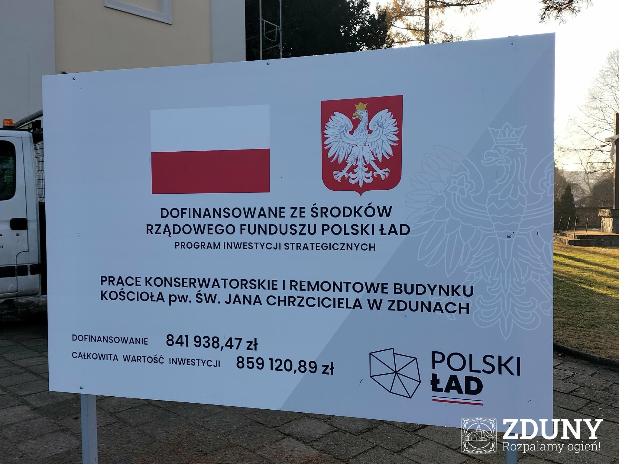 Łączna wartość zadania wyniosła 859.120,89 zł brutto, z czego 17.182,42 zł to wkład własny parafii pw. św. Jana Chrzciciela w Zdunach, a 841.938,47 zł - środki pochodzące z Rządowego Funduszu Polski Ład: Program Inwestycji Strategicznych.