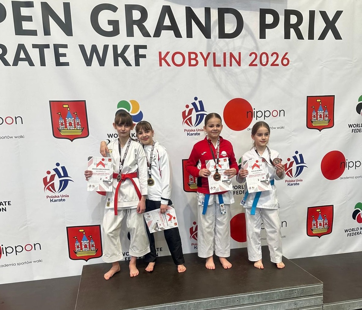 Kata dziewcząt U14 1 miejsce Dominika Bąkowska, 2 miejsce Marika Maćkowiak, 3 miejsce Aleksandra Banasiewicz, Nikola Jasińska