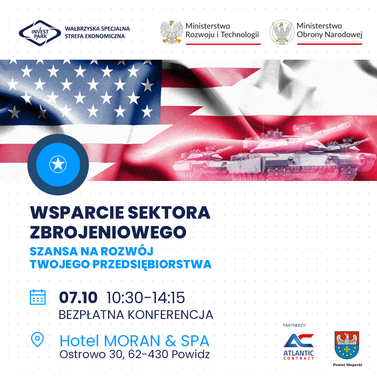 ,,Jak wykorzystać potencjał sektora zbrojeniowego w rozwoju firmy?’’ Odpowiedzi będzie można poznać podczas konferencji, która odbędzie się 7 października 2025 r. w hotelu Moran & SPA w Powidzu. Wydarzenie skierowane jest do przedsiębiorców zainteresowanych współpracą z sektorem zbrojeniowym. Podczas konferencji przedstawione zostaną możliwości wsparcia, programy rozwojowe oraz potencjał współpracy z firmami krajowymi i zagranicznymi.